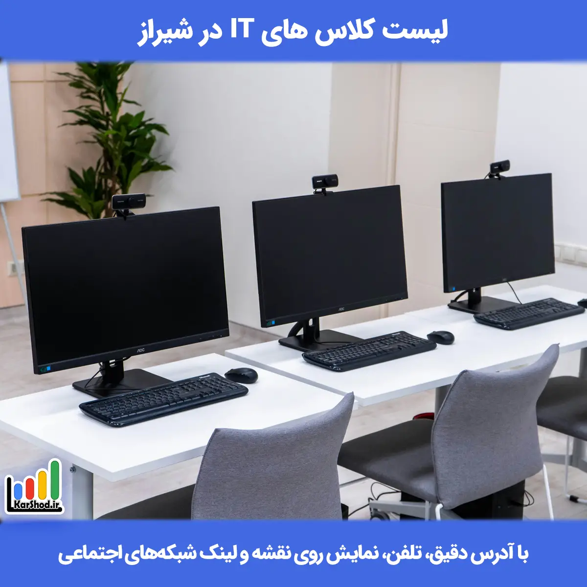 وبسایت کارشد؛ بانک مشاغل شیراز، در پاییز 1404 لیستی کامل از بهترین کلاس های IT در شیراز را گردآوری کرده است. این لیست شامل آدرس، شماره تماس، مسیریابی و نظرات کاربران است تا بتوانید با اطمینان، آموزشگاه مناسب خود را انتخاب کنید.