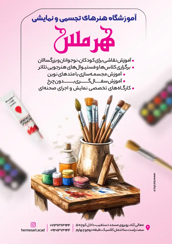 3آدرس پیج اینستاگرام آموزشگاه هنرهای تجسمی و نمایشی هرمس چیست؟