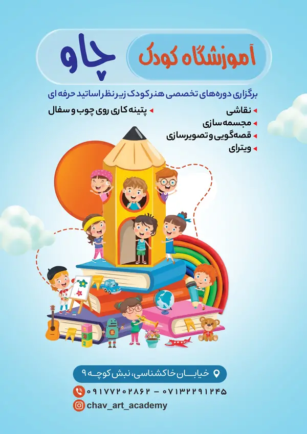 برای آموزشگاه کودک چاو این آدرس ثبت شده است: chav_art_academy | Naghashan_koochak_shiraz
