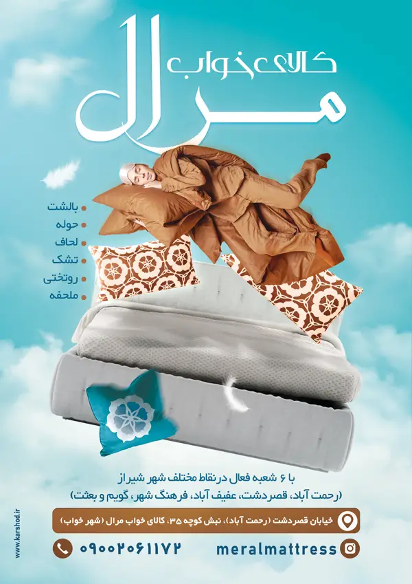 کالای خواب مرال، شعبه عفیفآباد؛ عرضهکننده تشکهای طبی و دیسک کمر، بالش مموری فوم و هوشمند، روتختی دونفره و تکنفره، لحاف، ست روبالشی و سرویس خواب.